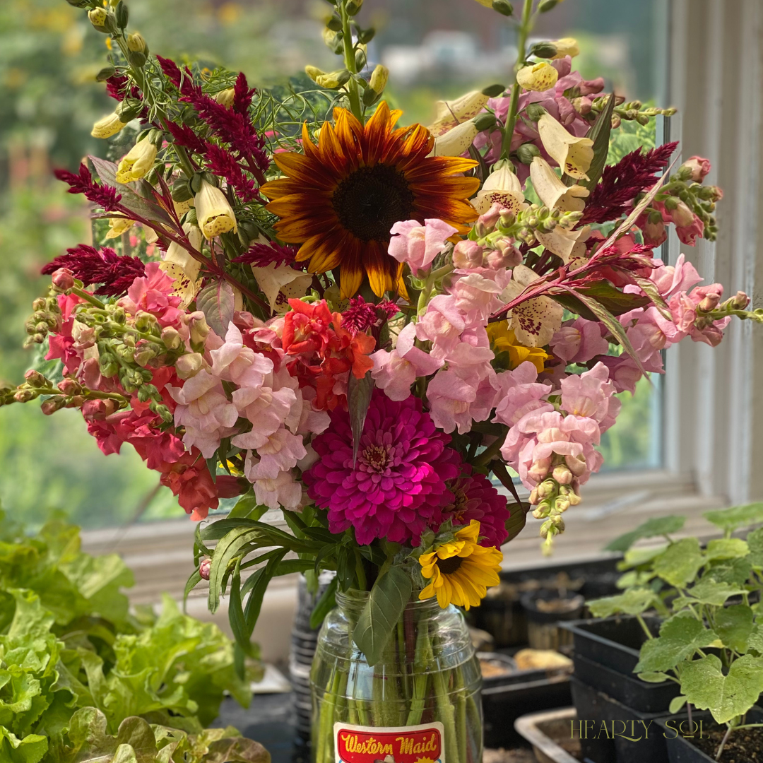 Once our flowers start (usually sometime in the middle of May) you will start receiving your bouquets. The last bouquets will come in late September. Some weeks the bouquets may be in a wrap and some weeks they may be in a jar. If you would like your bundle to be in a jar, please bring one with you when you pick it up. **Local pick up only** We do not ship.